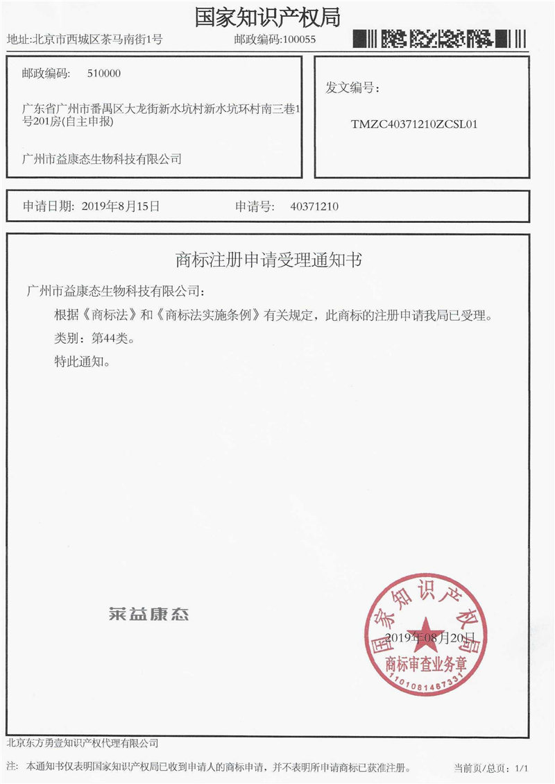 您的位置: 首页资质荣誉产品检测报告莱益康态商标注册