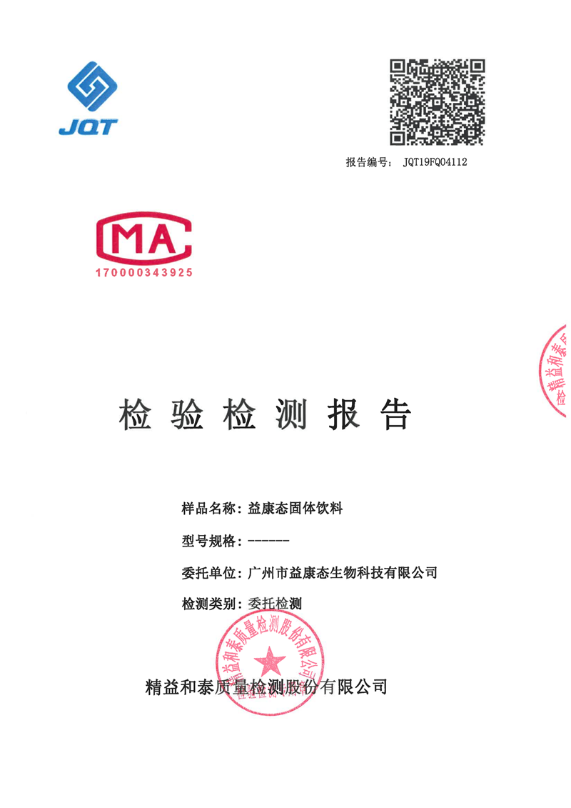 您的位置: 首页资质荣誉产品检测报告益康态固体饮料检测报告